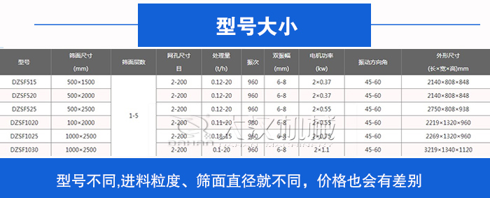 鋼纖維直線振動篩有DZSF-515、DZSF-520、DZSF-530、DZSF-1020、DZSF-1030、DZSF-1540等標(biāo)準(zhǔn)型號,因型號的不同他們的進(jìn)料粒度、篩面直徑存在較大的差異,在生產(chǎn)中可以為用戶帶來的市場盈利也有所不同,進(jìn)而廠家對于市場上型號不同的鋼纖維直線振動篩價格定位也有區(qū)別。