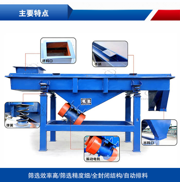 輕型直線振動篩簡稱輕型直線篩,是一種運動軌跡為直線的中、細篩分設(shè)備,其材質(zhì)分為多種,如:不銹鋼材質(zhì),碳鋼材質(zhì),全不銹鋼材質(zhì)等,可滿足不同行業(yè)的篩分要求,1至5層篩網(wǎng),能同時進行2至6個等級的分選自動排料,更適合于24小時流水線作業(yè),對于粉狀、顆粒狀的物料均可篩選、分級、除雜,對于固液混合物體可進行粗濾,篩分產(chǎn)量大、效率高,適合流水線作業(yè)。