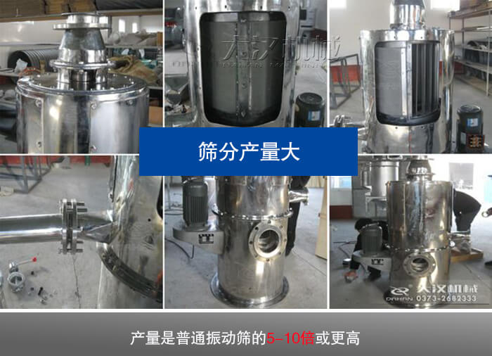 氣流篩般適合脈沖除塵器,風機等配套使用,可長時間連續運行,能夠保證物料篩分產量更大,其產量是普通振動篩的5-10倍或更高。