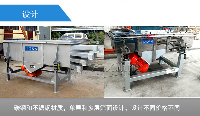 大漢廠家生產的方形振動篩可以按照用戶篩分物料的特性選擇碳鋼和不銹鋼材質,不銹鋼材質的方形振動篩偏貴,但是衛生標準高,還可以按照物料篩分等級的多少分為單層和多層篩面設計,多層方形振動篩耗材多,工藝要求更高,所以價格會比單層振動篩貴。