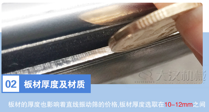 板材的厚度也影響著直線振動篩的價格,般情況下,我們的直線振動篩板材厚度選取在10-12mm之間,而像些小作坊,他們的直線振動篩板材厚度在4-5mm之間,雖然他們的設備價格便宜,但其設備的篩框或機器極易出現斷裂從而影響生產,而使用正規材質的振動篩雖然價格會略高,但相應厚度的板材才能承擔起適合生產要求的激振力,這樣才能保障正常生產和節約設備維護成本。
