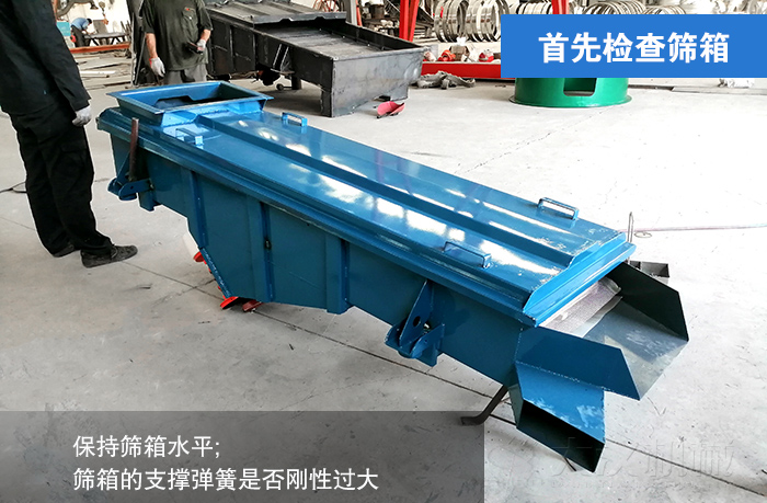 ①篩箱的安裝是否保持同水平面橫向水平,若篩箱的橫向水平?jīng)]有達(dá)到平衡會(huì)使篩面產(chǎn)生定程度的偏移,物料則無法進(jìn)行直線流動(dòng);這需要對(duì)直線振動(dòng)篩的橫向水平面進(jìn)行調(diào)整,保持篩箱水平;