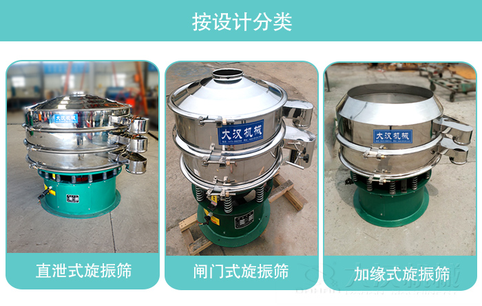 新鄉大漢旋振篩為配合個別行業篩分物料的特性及需求,而有各類型的設計,可分為直泄式(普通型)、閘門式、加緣式等。