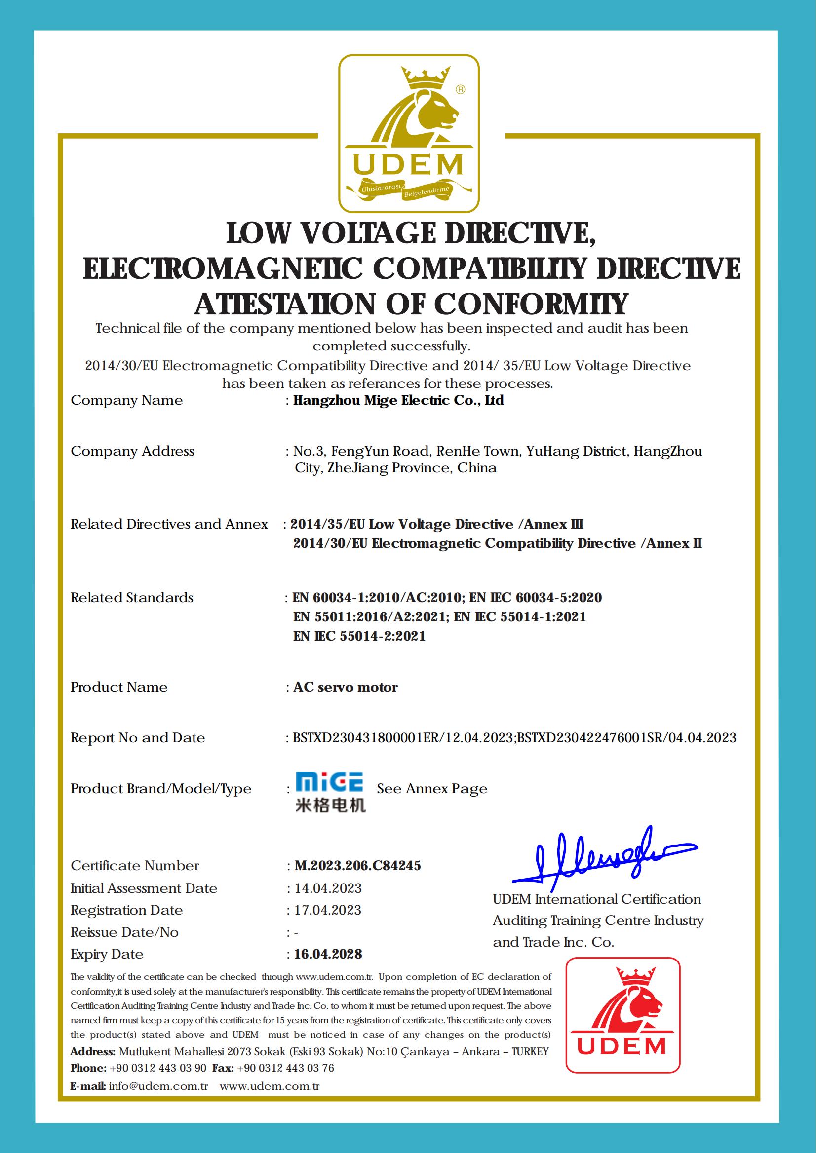 • 伺服電機CE證書